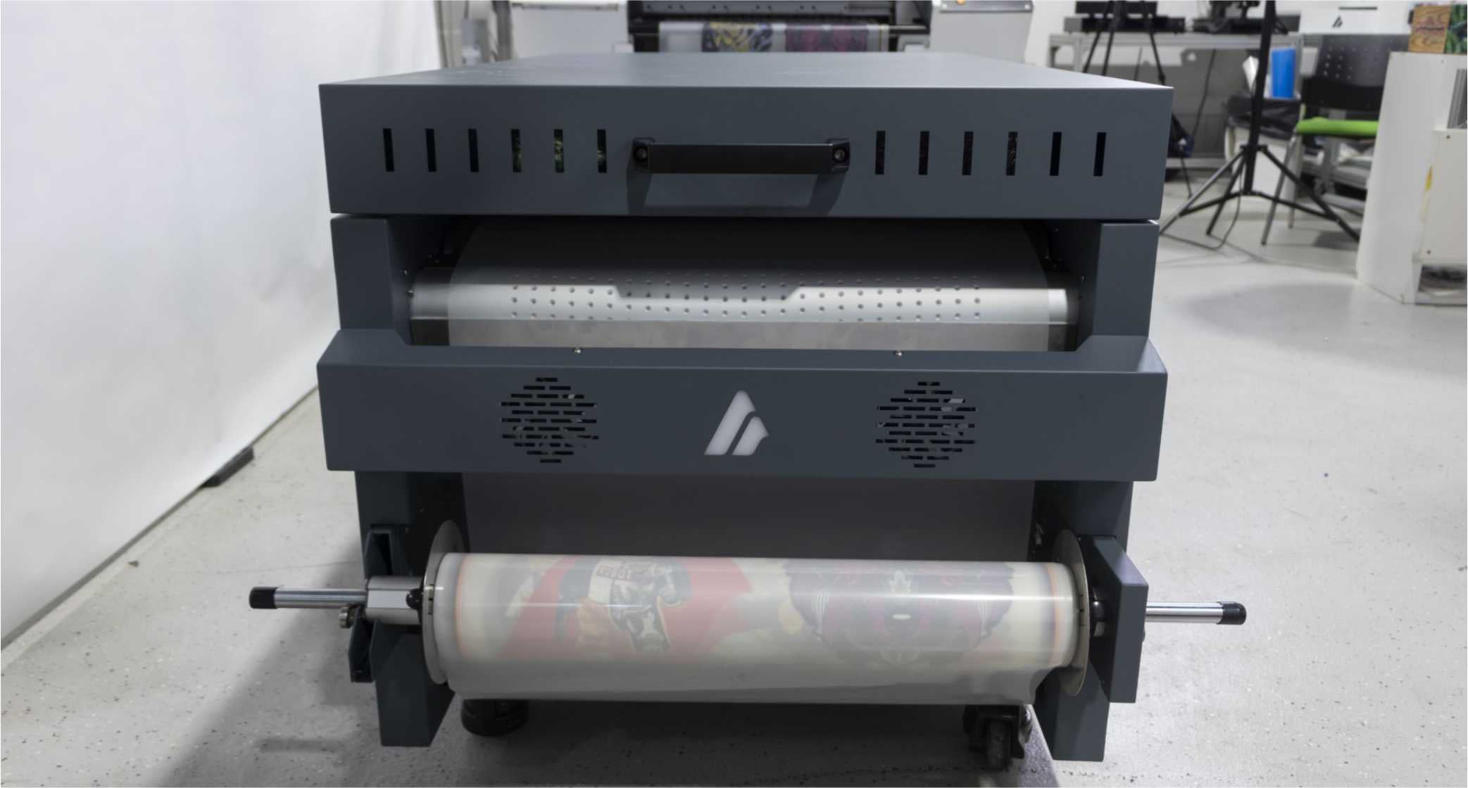 Der Chorus akzeptiert DTF-Folien mit einer Breite von bis zu 60 cm und ist mit allen derzeit auf dem Markt erhältlichen DTF-Druckern kompatibel. Während der Entwicklungsphase wurde besonderer Wert auf die physischen Abmessungen der Maschine gelegt. Mit einer Gesamtbreite von 780 mm lässt sich Chorus in nahezu jede Produktionslinie integrieren.