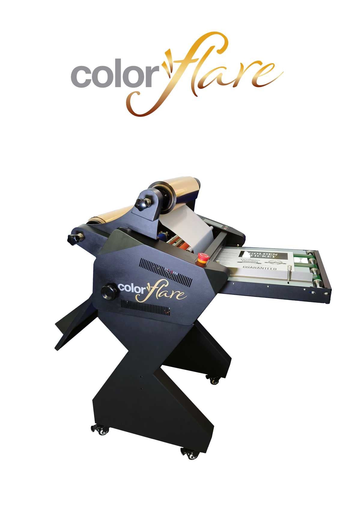 ColorFlare CF2500 Automatisches Laminier- und Foliengerät. Fügen Sie farbige metallische Tonerfolien oder Laminierungen mit digital überdruckbaren und holografischen Effekten hinzu, um gewöhnliche Drucke in Premiumdrucke zu verwandeln. Laminiergerät mit automatischer Zuführung.